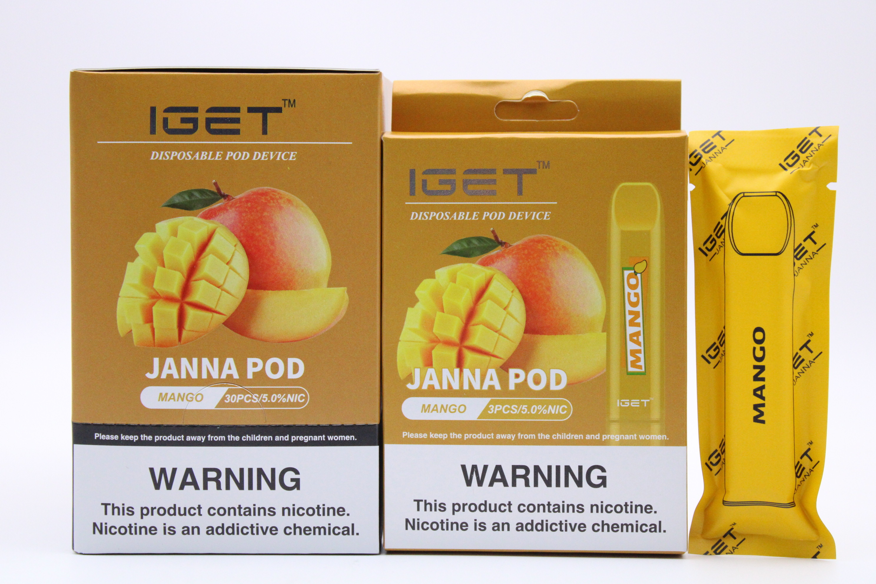 Het pakket omvat: Enige IGET Vape JANNA In One Pack & 30pcs van IGET Vape in Één Didplay-Doos