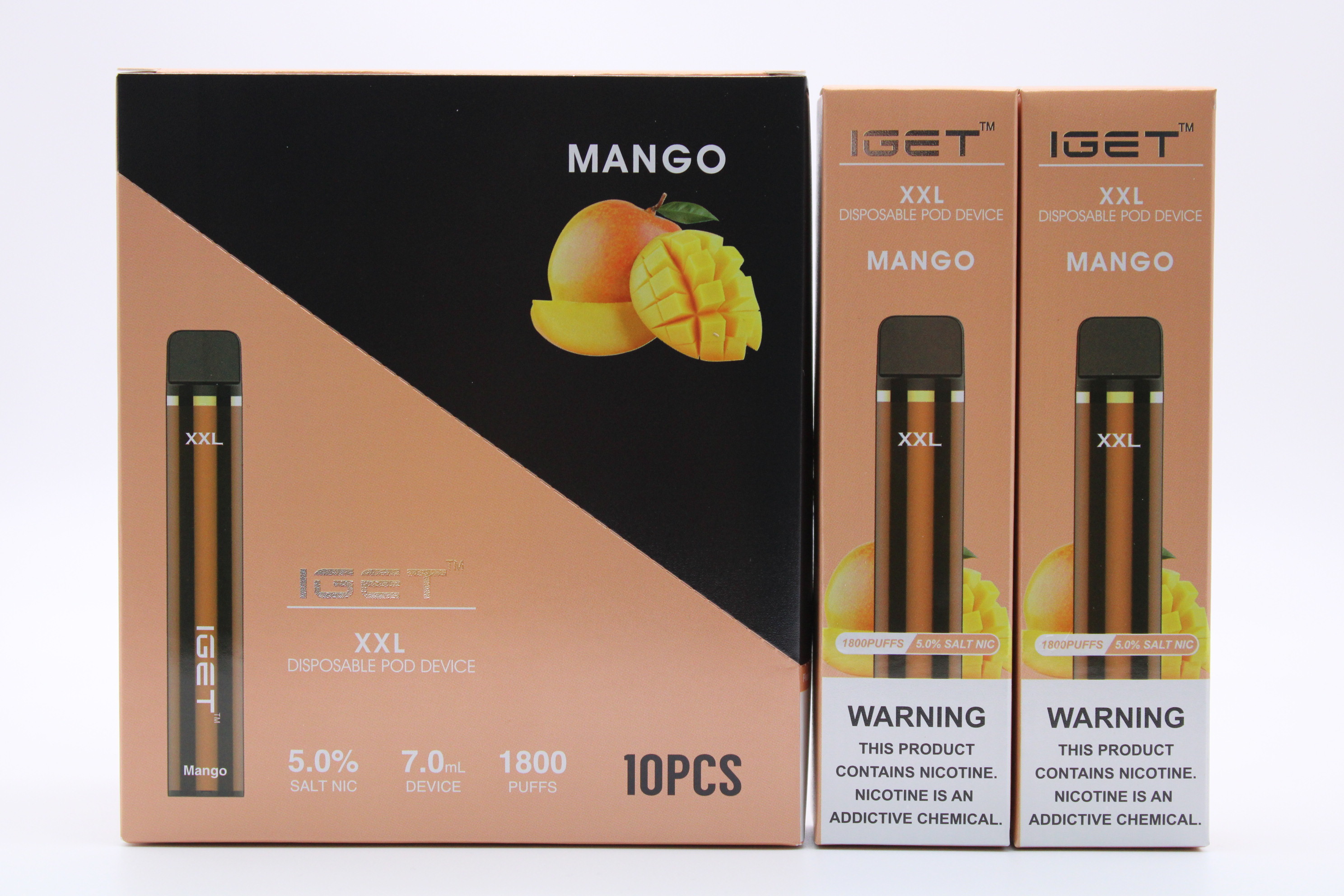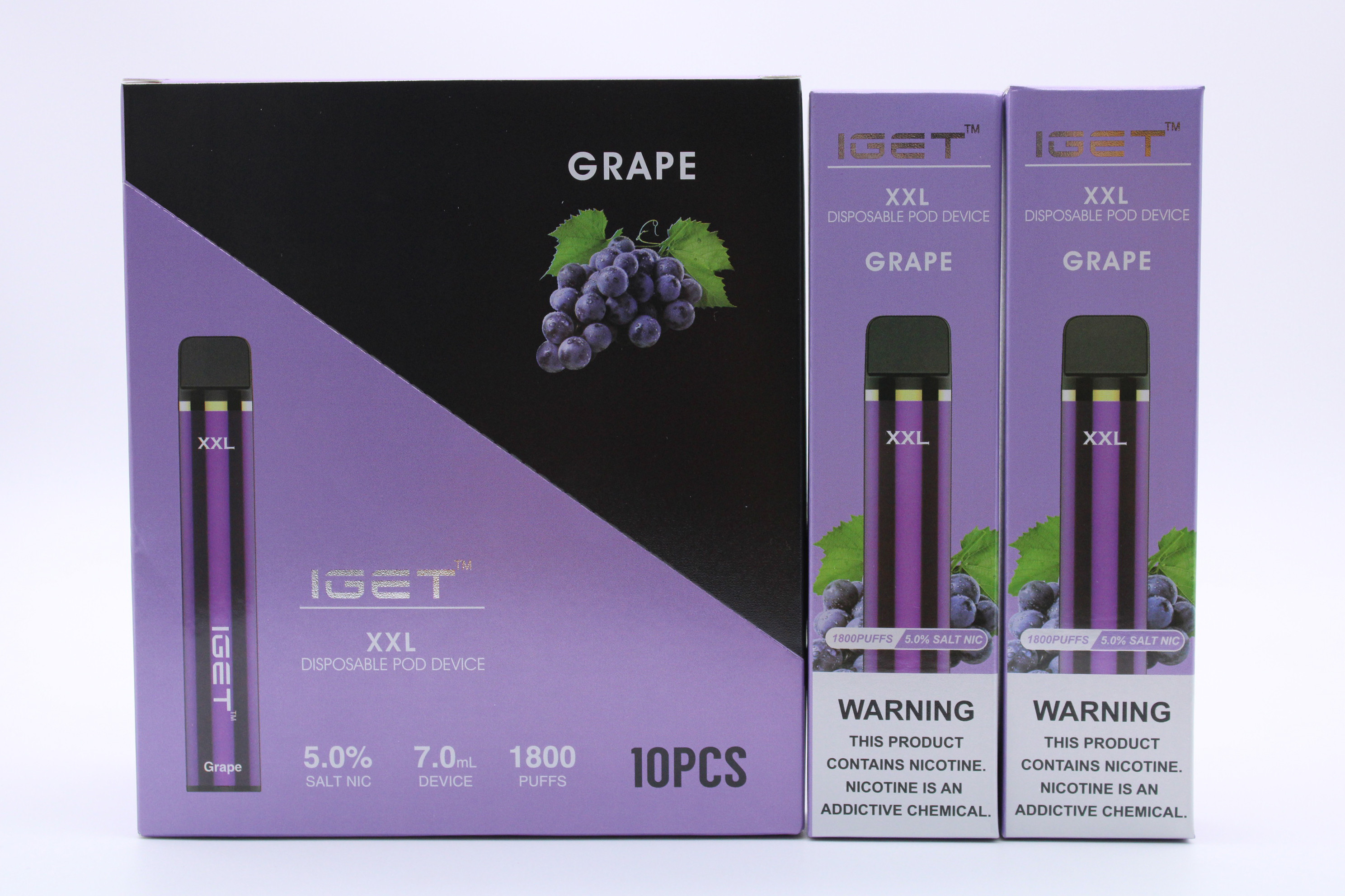 Het pakket omvat: Enige IGET Vape XXL in Één Pak & 10pcs van IGET Vape in Één Didplay-Doos